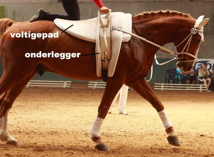 De onderlegger wordt direct onder de voltigeersingel en boven op de voltigepad geplaatst.
